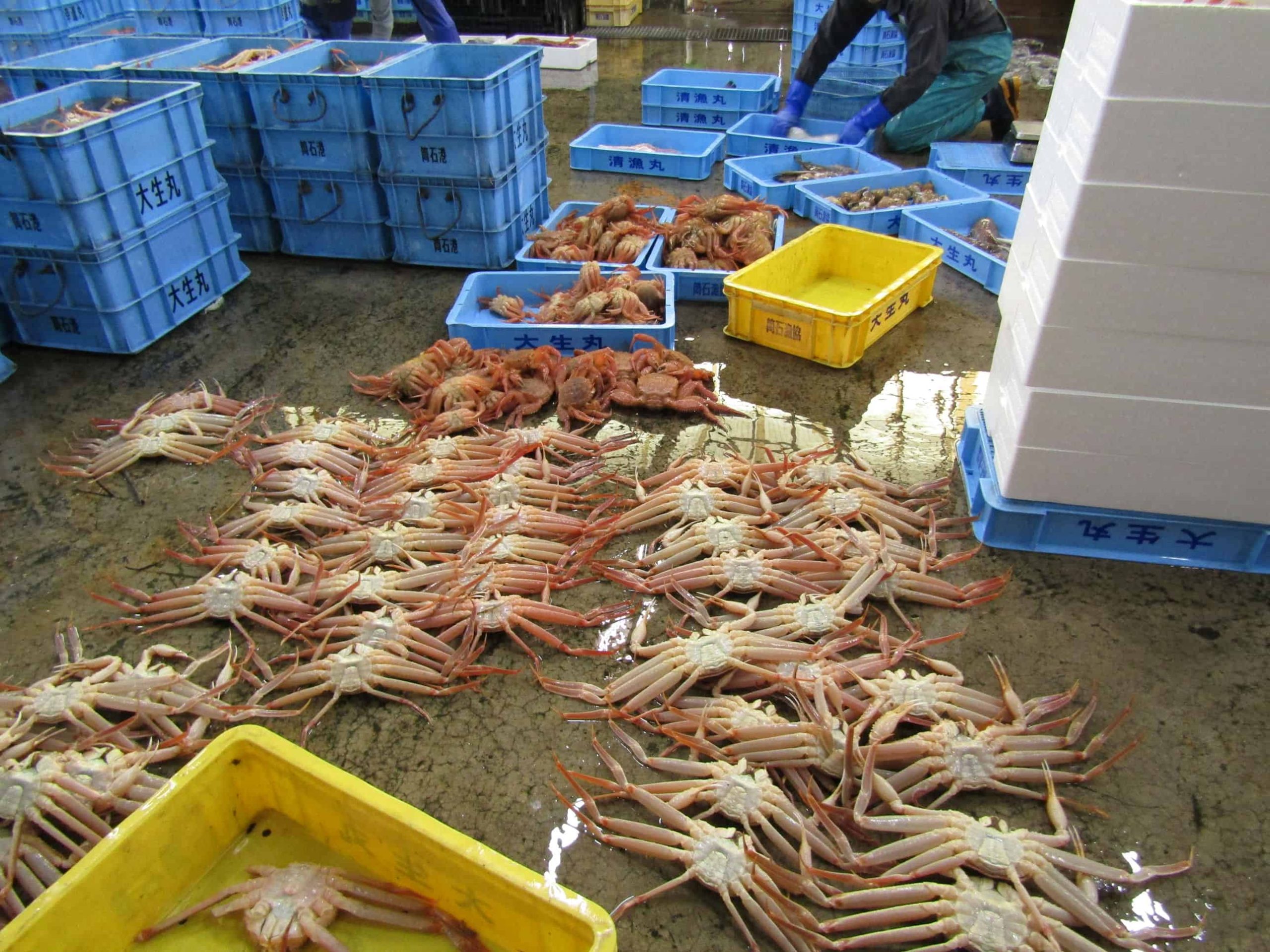 筒石漁港では解禁日とあって、沢山のカニが水揚げされました。